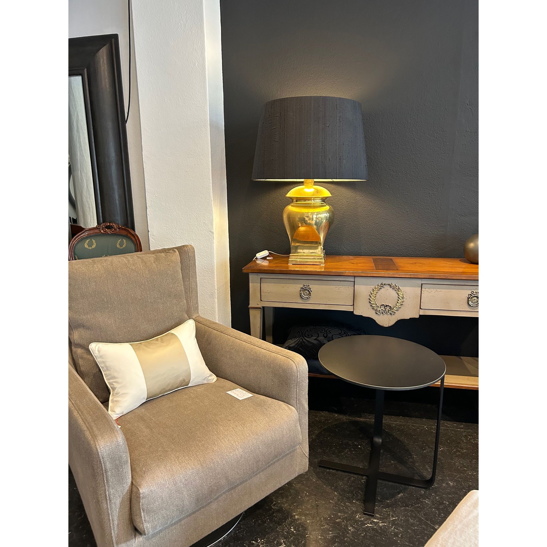 Our specialties include upholstery as well as sewing and fitting curtains and loose covers for sofas, chairs and cushions – all produced in our workshops. We also offer a large selection of fabrics, carpets, curtains and sun protection systems. Selected sofas, chairs, lamps, mirrors, consoles and tables are on display in our showroom, including classic and antique pieces. Custom-made sofas are available on request.